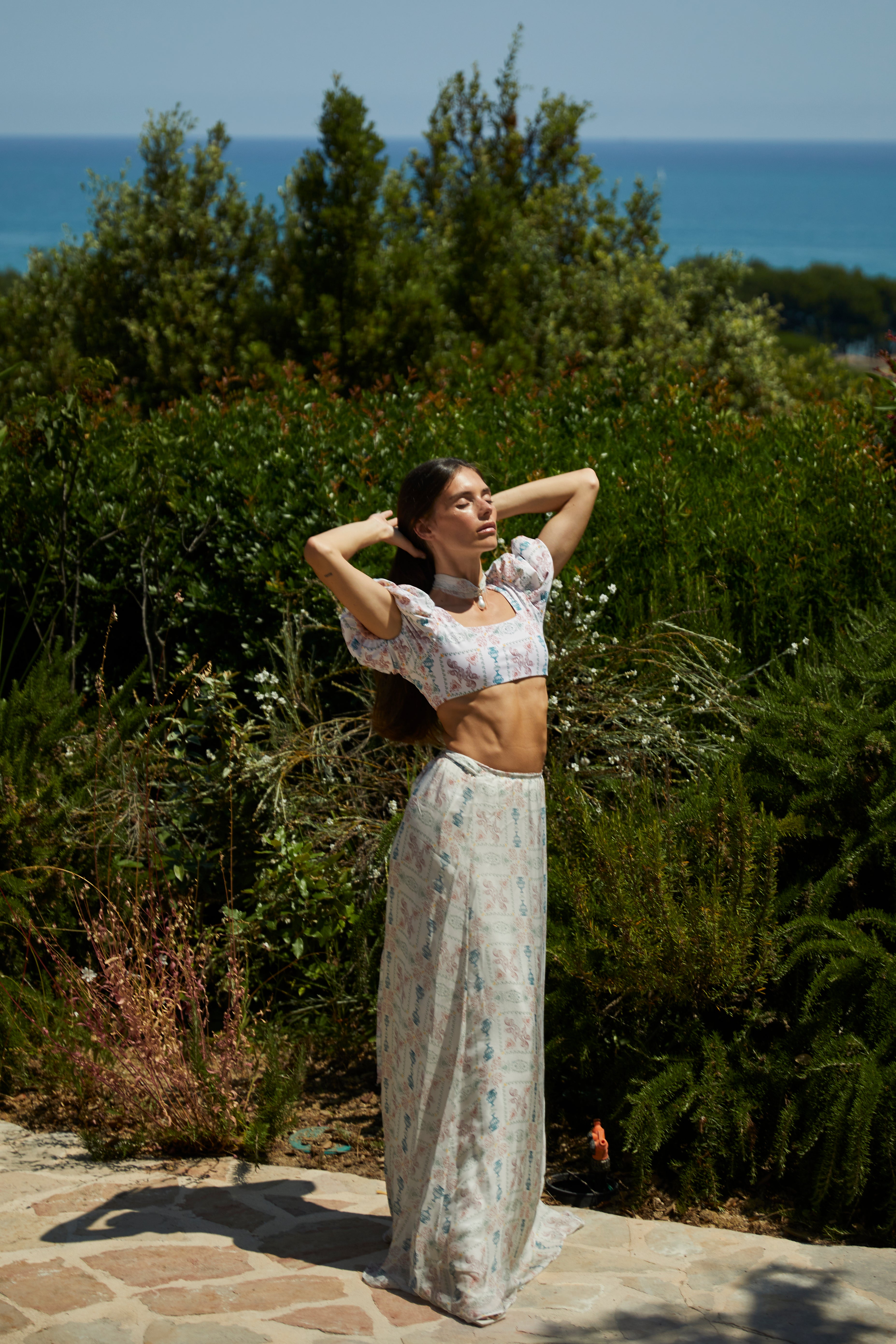 Linee morbide e fluide, come sete nel mare; drappeggi che ricordano gli abiti eterei delle sirene.